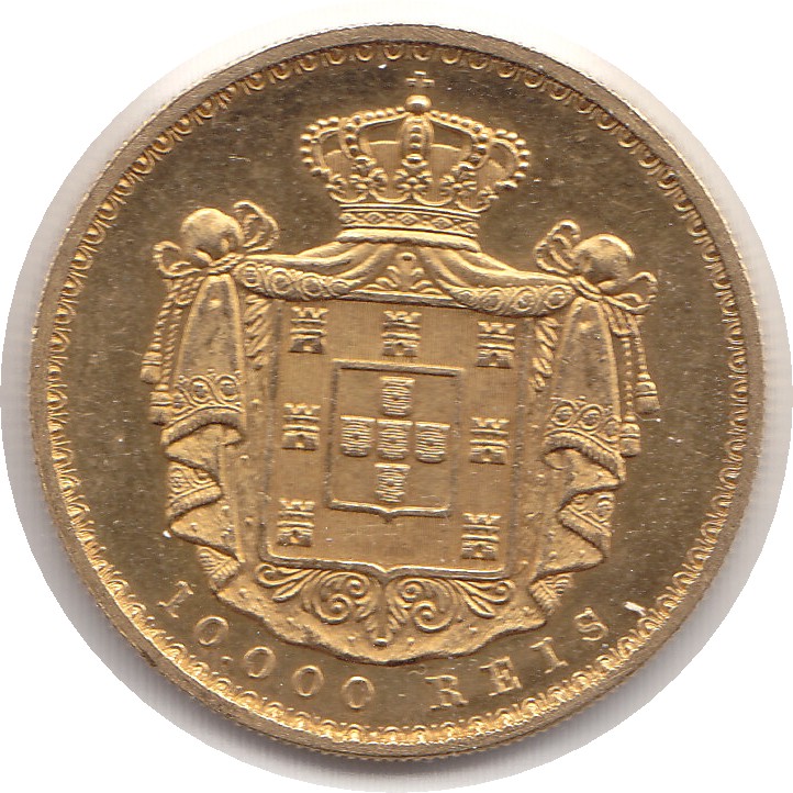 Coroa de Ouro da 4ª Dinastia cunhada durante o reinado de D. Luís I Trata-se de uma cunhagem mecânica, datada de 1880, e catalogada por Alberto Gomes segundo a numeração 17.03